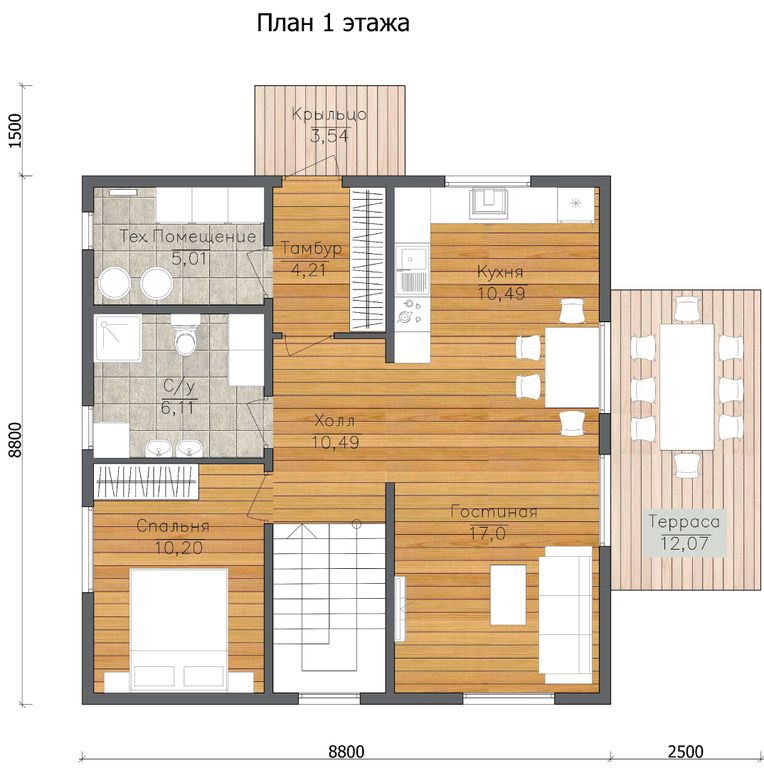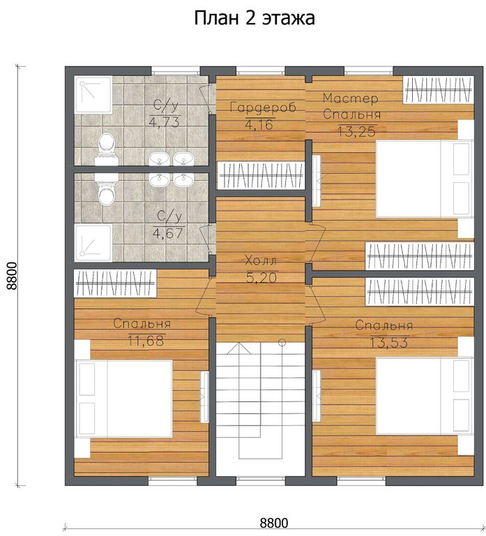 - Внешние габариты (ШхДхВ) -8,8 х 8,8 х 7 м